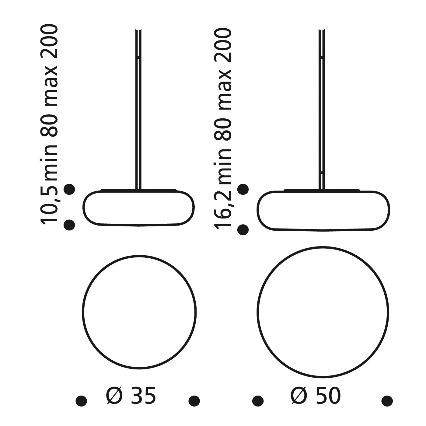 | Abmessungen | Itka 20: Durchmesser 20 cm, Höhe 9 cm.Itka 35: Durchmesser 35 cm, Höhe 12,5 cm. Itka 50: Durchmesser 50 cm, Höhe 17 cm.Baldachindurchmesser 9,8 cm, Gesamthöhe mit Abhängung min. 90 cm, max. 200 cm. |