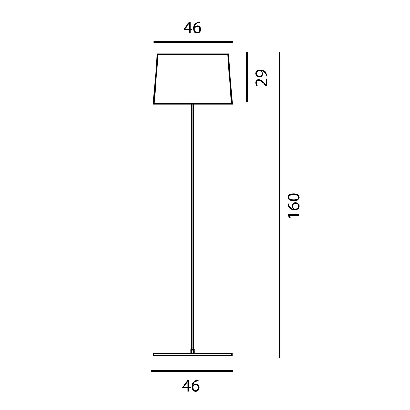 | Abmessungen | Höhe 160 cm, Durchmesser 46 cm, Schirmhöhe 29 cm, Kabellänge 2,5 m. |